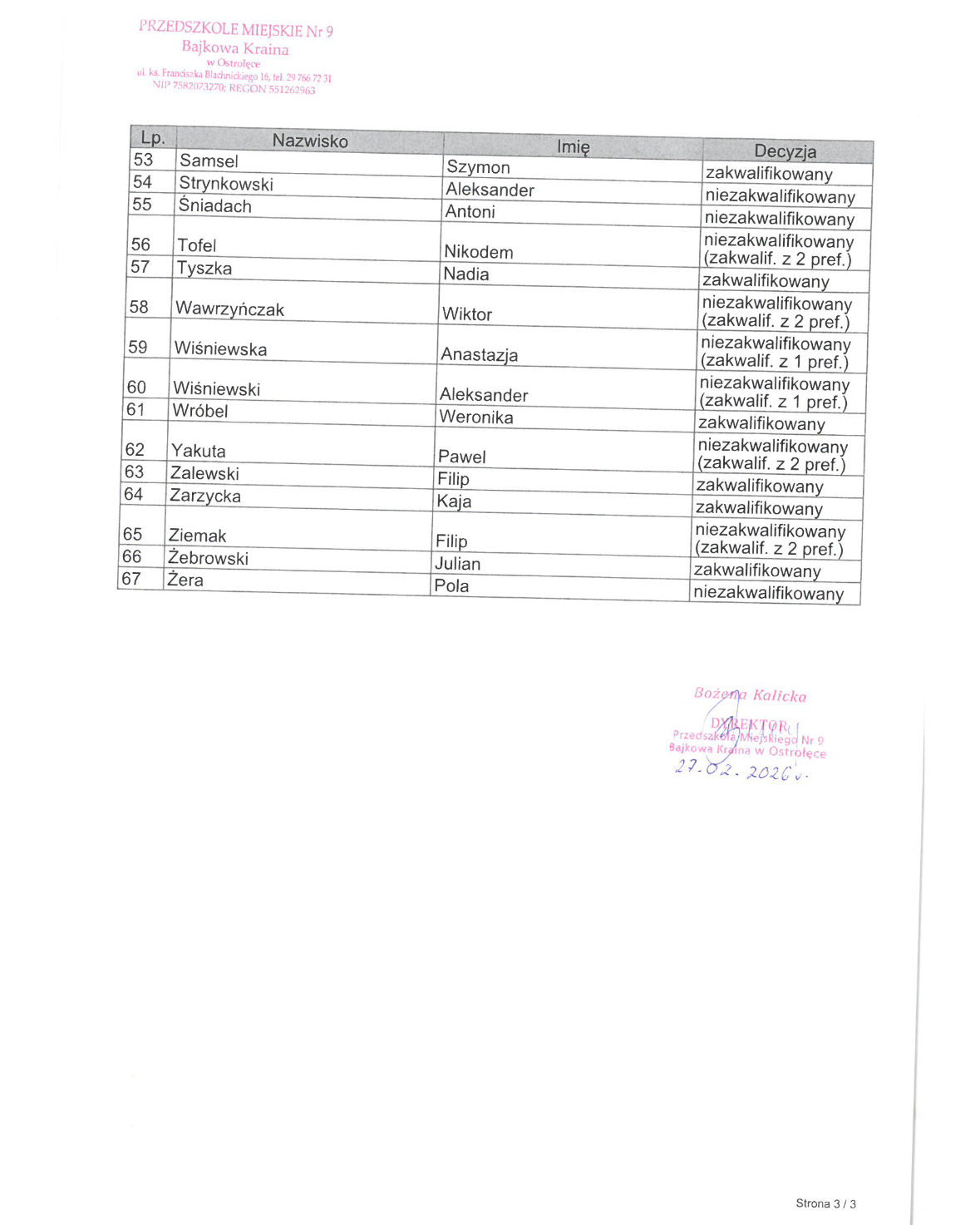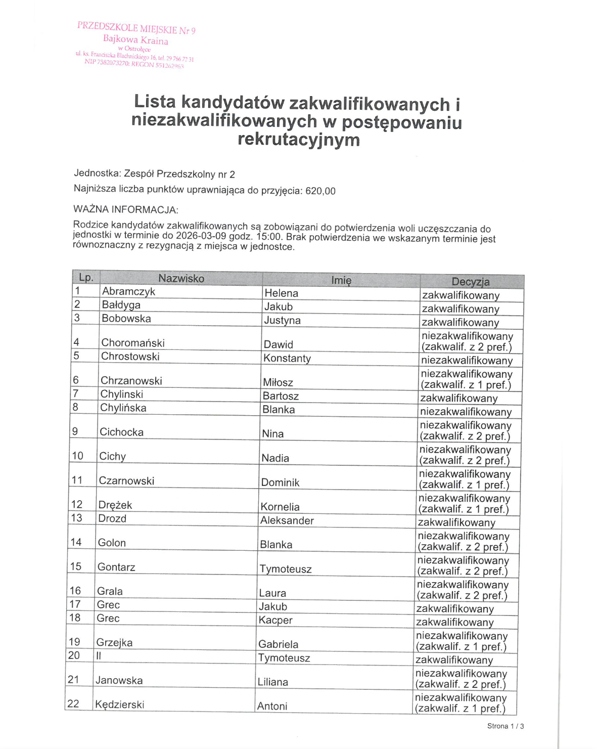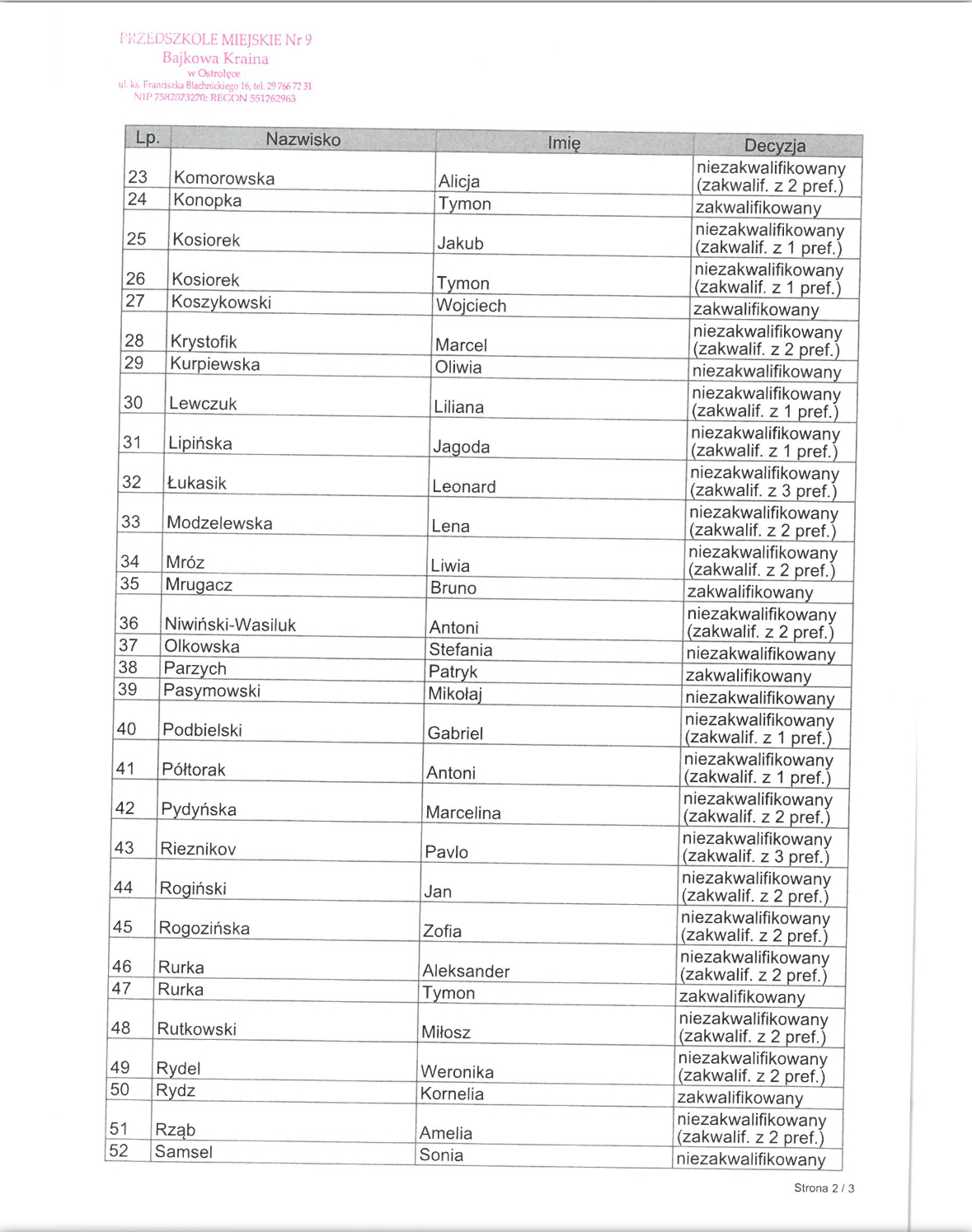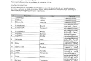 Lista kandydatów zakwalifikowanych i niezakwalifikowanych